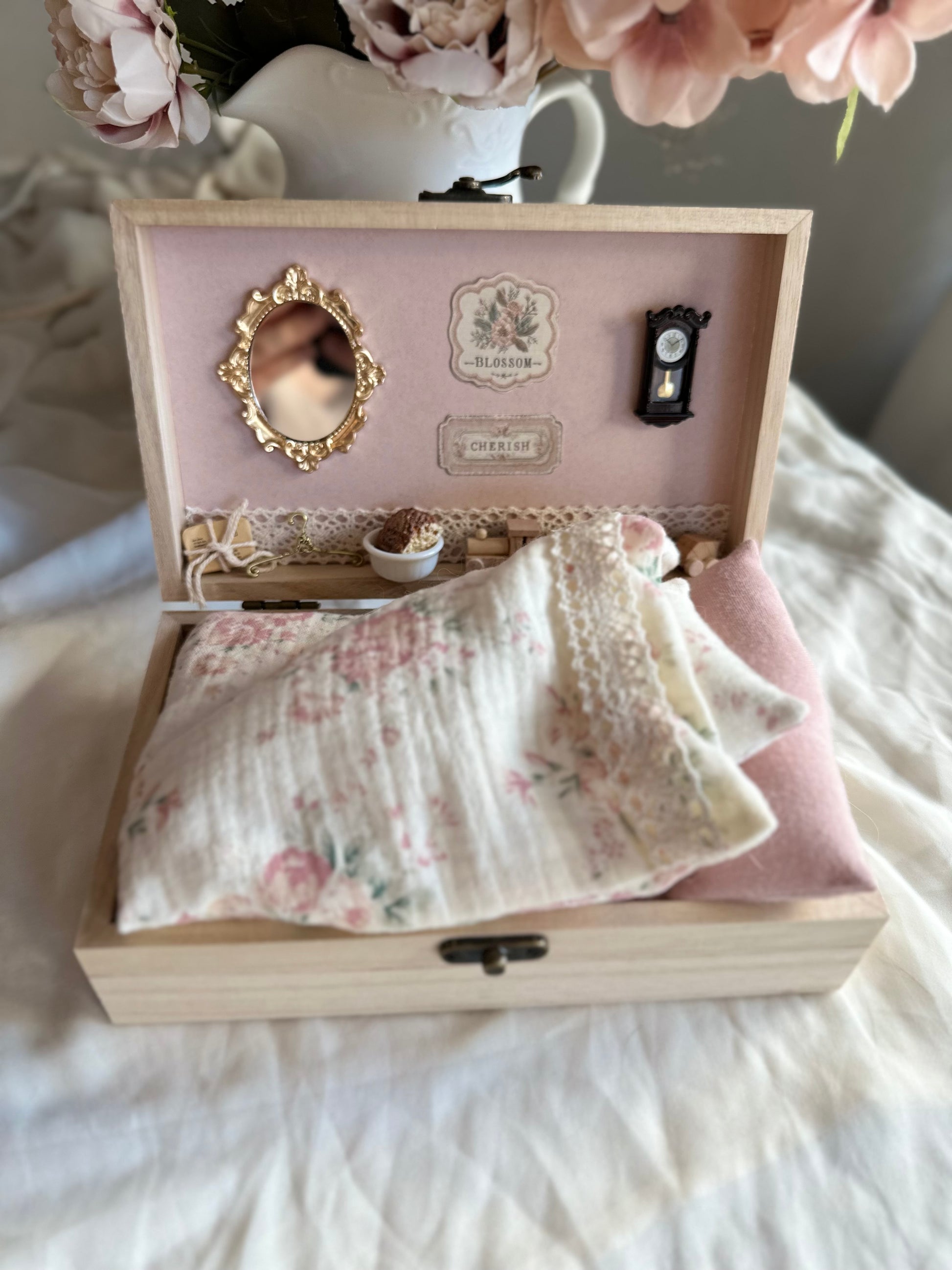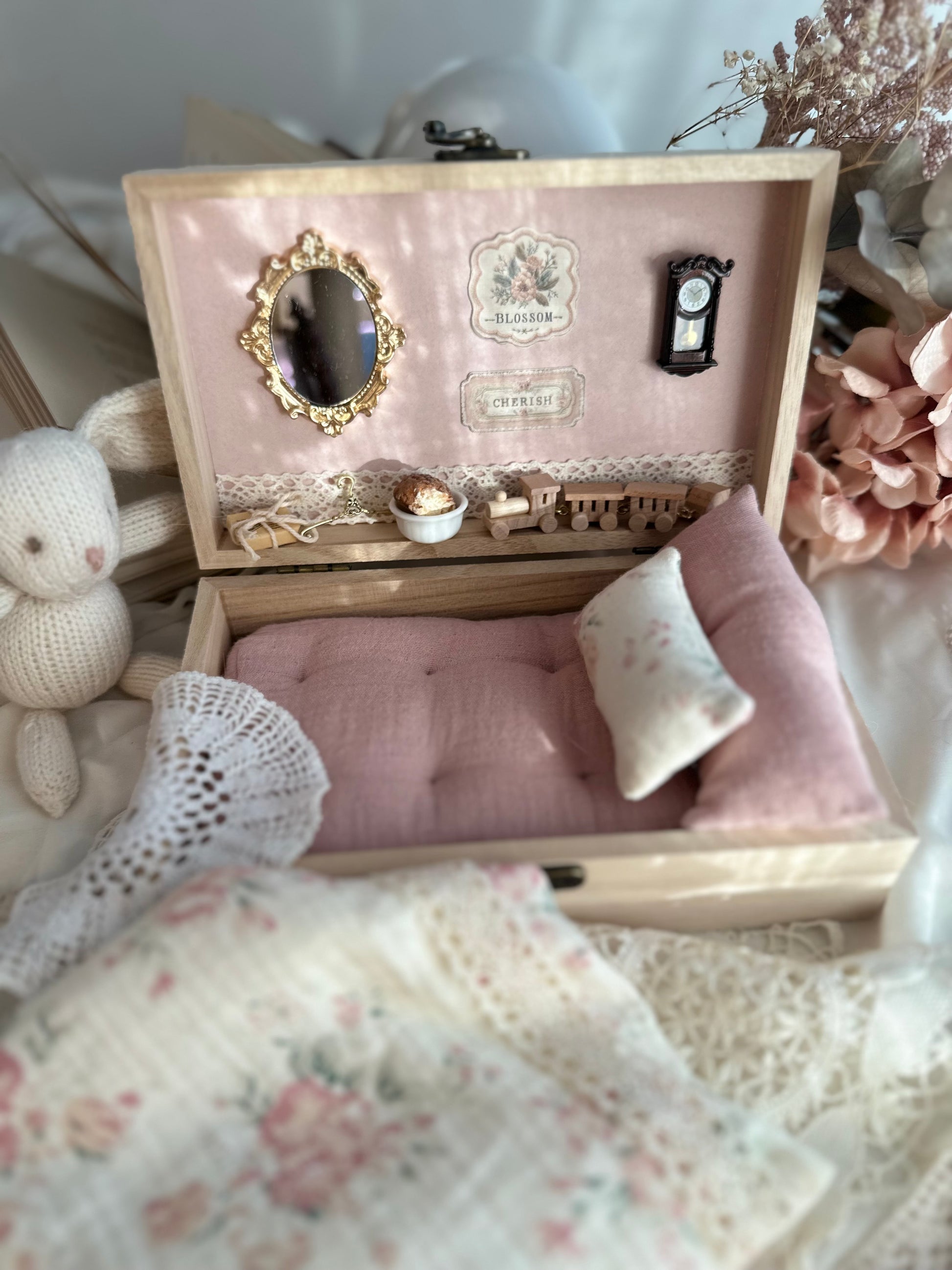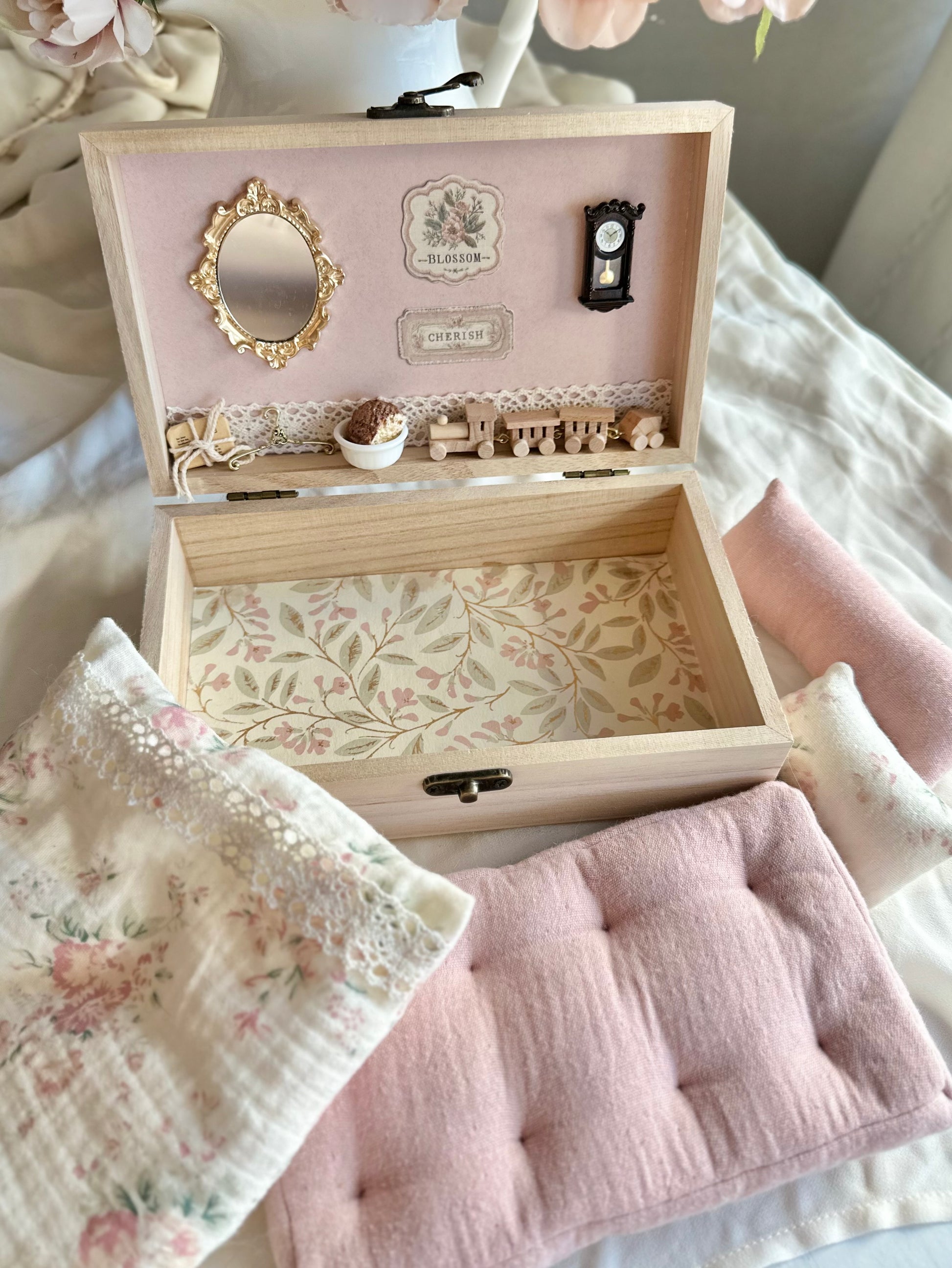 This wodden box truly is a little world holding her breath, eagerly awaiting to be opened and shared with some gentle and small being.
